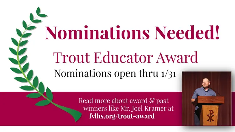 The Trout Family Educator Award was established in 2007 by Dr. Monroe and Sandra Trout in honor of Dr. Trout's parents and siblings. The purpose of the award is to recognize a full-time FVL teacher each year for his/her professional growth opportunities to advance his/her education and benefit the FVL student body.